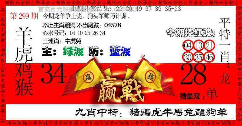 298期:九肖【龙猴蛇鸡虎狗马鼠开:羊23中