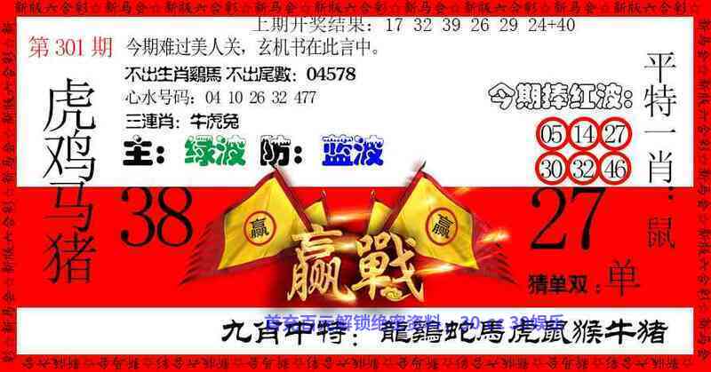 301期:九肖【猴兔马蛇狗羊猪鸡开:牛05中